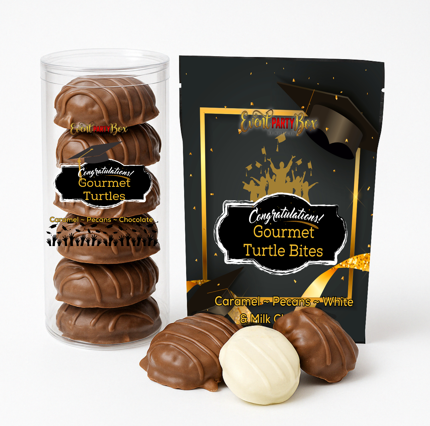 Introducing our Gourmet Duo Pack β a delicious combination of our signature handcrafted pecan turtles and our indulgent turtle bites.